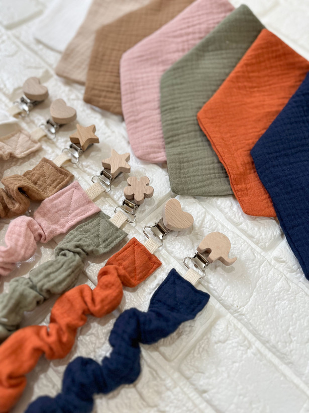 ضدحساسیت پارچه نخ بسیارلطیف موسلین،گیره چوبی از جنس راش ،که محکم به لباس یا پیشبند فرزند دلبندتون میتونین وصل کنین هم از شر افتادن وکثیف شدن پستونک خلاص میشین هم از گم شدن مکرر😅 بند انتهایی هم بسیارمقاوم.