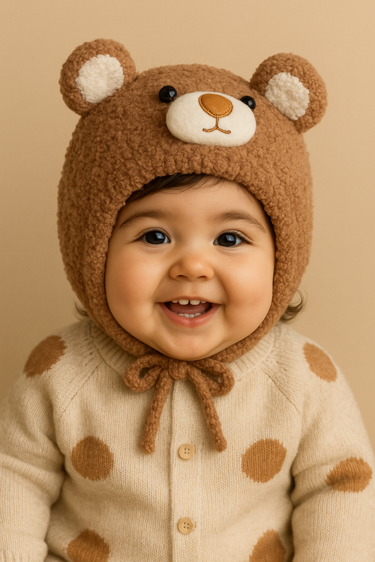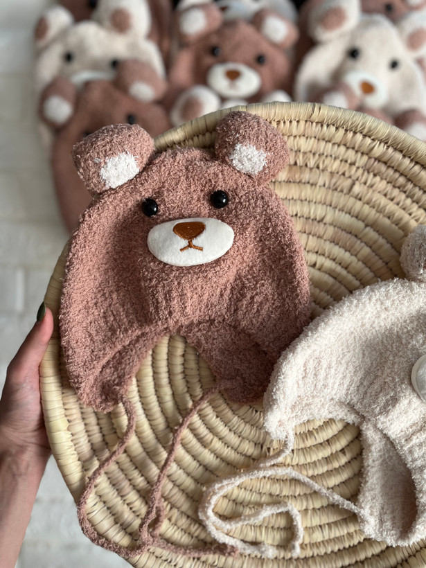 کلاه بوکله تدی مناسب ۶-۱۸ماه،دارای بند برای بستن.جنس محصول بسیار لطیف ونرم