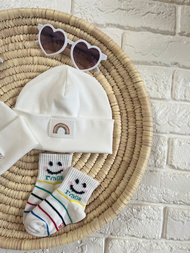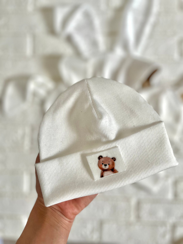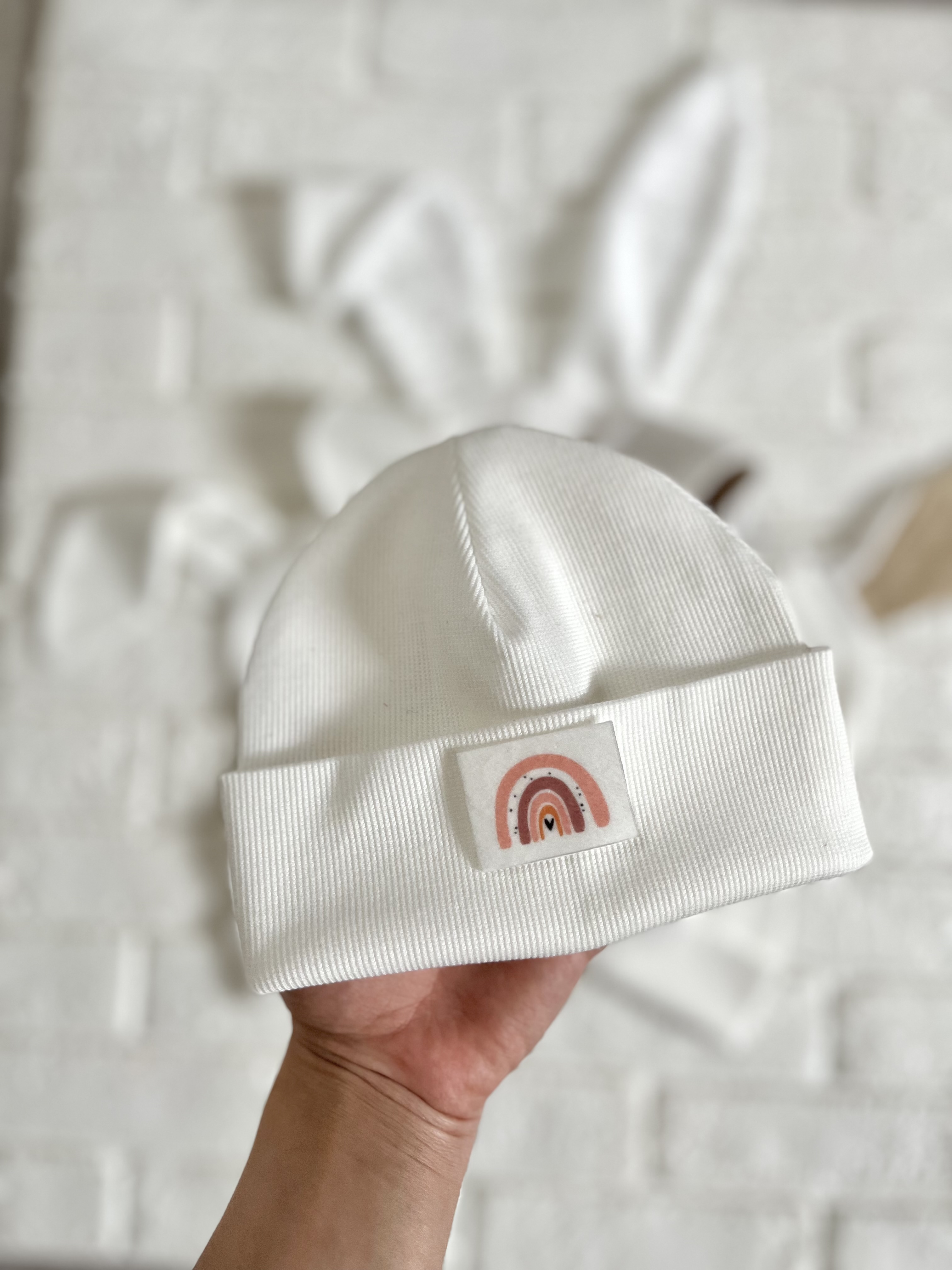 کلاه تریکو لیبل دار بچگانه رنگ سفید